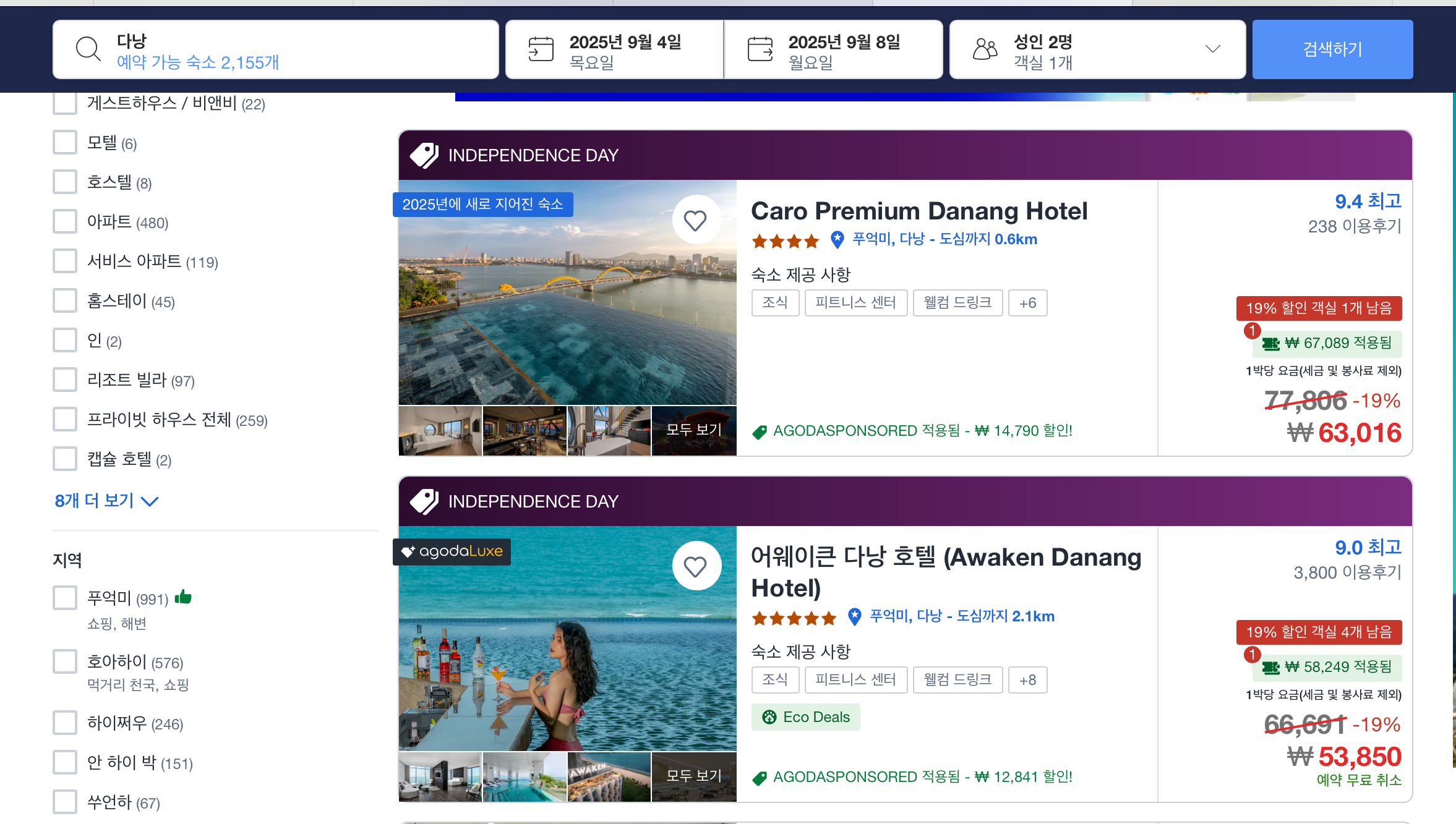 1박에 6만원 이내로 호텔, 리조트를 이용 할 수 있으니 가성비가 너무 좋습니다.